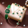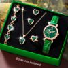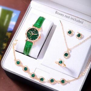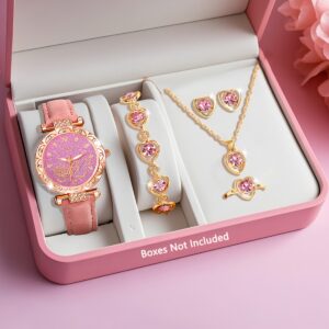 Ladies Watch 6pcs Ladies Fashionable Casual Quartz Watch with Peach Shaped Dial And Heart Necklace Earrings Bracelet Rings Jewelry Set Suitable for Daily Wear, Back-to- Season, Graduation Season, Thanksgiving, Couples, The Best Gifts No Box
